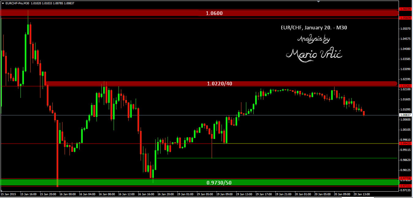 Finaly, we could see some technical clear levels here. Based on this M30 chart, we can see that 0.9730/50 is possible stronger support for the pair and 1.0220/40 resistance for now. That’s not small 500 pips range, but for sure is something we could take as a relevant technical points for now, after the smash what was made by the ‘SNB cap remove’.