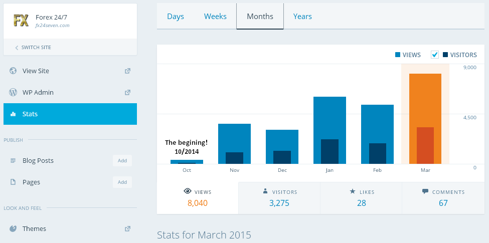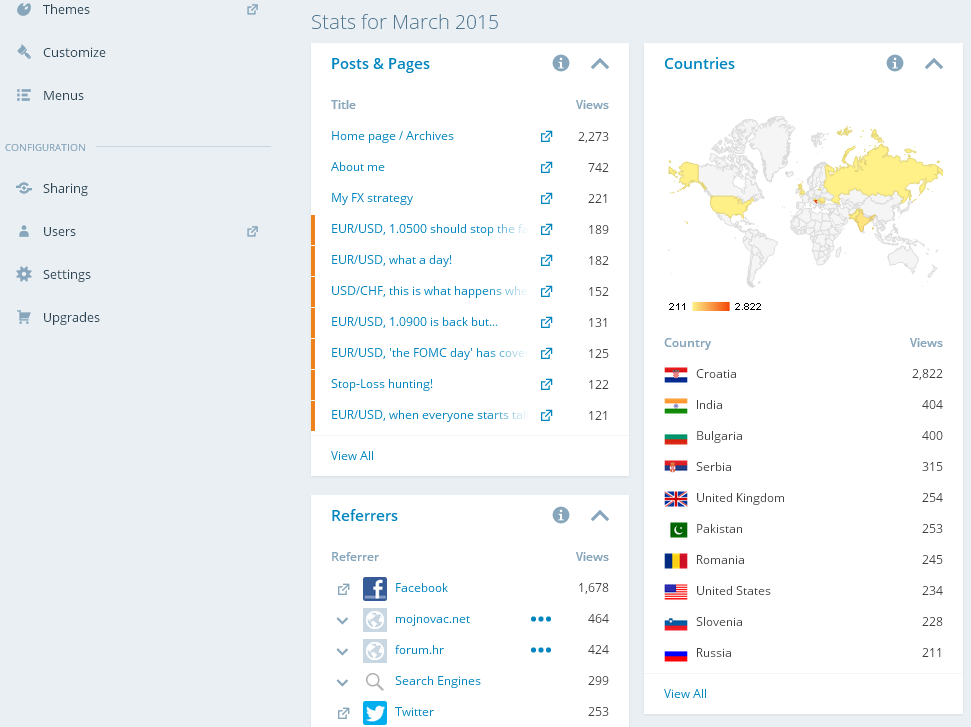 After only 5 months of writing, my blog have more then 8,000 views from 91 countries in March, wooow! More than 3,250 unique visitors, 67 comments… In March I have written 61 article/analysis. It seams that my blog is starting to be a serious forex community. 🙂 Here is the most important stats for March. Thank you all for visiting Forex 24/7, analysis and trades by Mario Urlic.