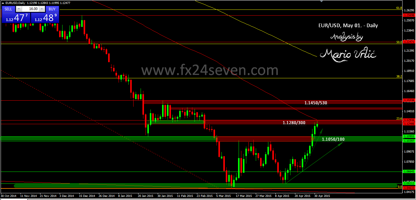 My target is reached with high of 1.1284 today, but the euro looks great today again, the same as in the last 7 days, bullish and strong. Well, this could be a preaty strong resistance, but when the currency is bullish enough, resistances fall easily and sellers are retreating at higher levels. Could that happen here? Sure it can, but we have sellers now between 1.1280/300, there is no doubt. You can see, that they were already active today. Daily MA100 is placed at 1.1300 as well and that’s also some kind of resistance as you know. This level is also 23.6 fibo return of the huge July 2014./March 2015. fall. Anyway, great ending the week for the euro would be closing above 1.1300, after wich that level will become support and give the euro bulls extra strenght for the coming weeks. On the way down, first support waits at 1.1185/95, second at 1.1120/30, strong at 1.1050/100. Ok, I am out here, waiting for the end of the week, relaxed. Keep following my analysis! 😉