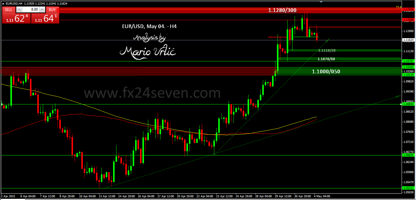 We reached my predicted target/resistance at 1.1280/300 last week, the 23.6 fibo return of the July 2014/March 2015. huge eur/usd fall, after wich the sellers have taken over the control and return the pair down to 1.1175 support, where the pair ended the week. What do we have now? You can see, that euro started the week in a bear mood, breaking support from Friday at 1.11975 aiming next target/support at 1.1110/20. Buyers are waiting lower at 1.1070/90, stronger at 1.1000/50. This is start of the week, let’s see how will buyers react and where?