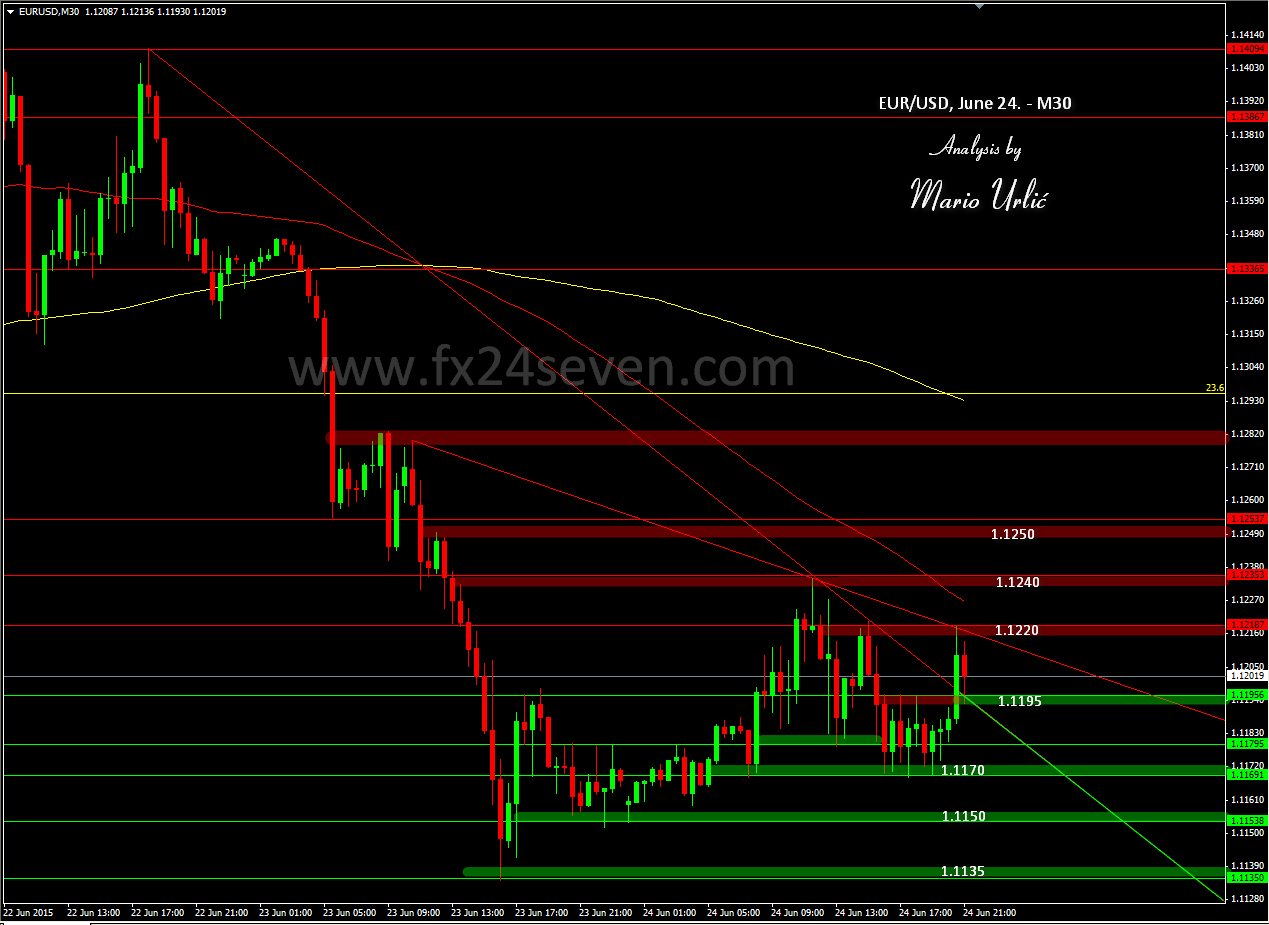The levels are clear and accurate as they can be, in 1 pip. Strong support today, first at 1.1185/95, after at 1.1170 for hours. The pair jumped in the last hour, but trend line stoped the euro at 1.1220, where the previous resistance was placed today, another trend line as well. We can’t say that the euro is bullish today, but the buyers are serious here as we can see that, despite all the bad news from the Greece/EU meeting. Interesting day, there is no doubt about that. 1.11959 is now support here, 1.1170 the stronger one under. On the way up, 1.1220 is the first resistance, 1.1240/50 the second one. Let’s see what will happen here, big boys are on the move, we can follow! 😉 If euro manage to break true those levels 1.1220/50, everything could happen here. Fantastic!