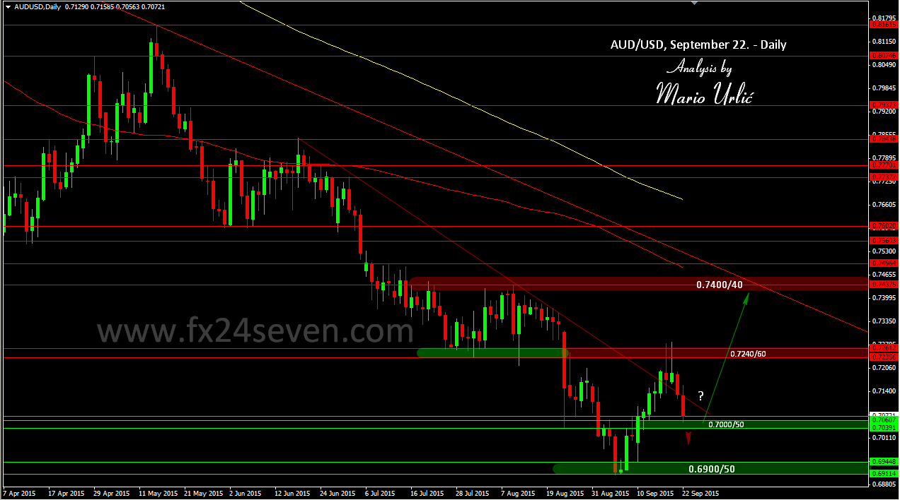 US dollar buyers have no mercy and strikes back all over the market in the last couple of days. Technical levels works fine, let’s take a look could we have an inverse H&S here at daily chart? It’s obvious that we have head at 0.6900, neckline at 0.7250, one shoulder at 0.700 for now, second colud be here as well. But, what important is that 0.700/50 holds this attack. It that level fall, 0.6900/50 is the next target for the sellers, double bottom is possible as well. Wow, it’s very interesting after latest FED’s meeting and not hike decision. All in favor US dollar, who could tell that!?