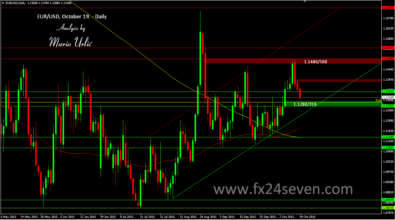 Euro is searching for the buyers on Monday and they could be here near 1.1300. This is third red day in a row downtrend, but there is not much voulume in this selling for now. Support at 1.3340/50 looks broken now, thal level was supported with H1/MA200 in the last two days. Could euro bounce back to that level, sure it can, but let’s take a look could the buyers return the lost teritory in total. The pair opened the week at 1.1378, that could be first target for the bulls. 1.1280 looks like solid technical support at this point.