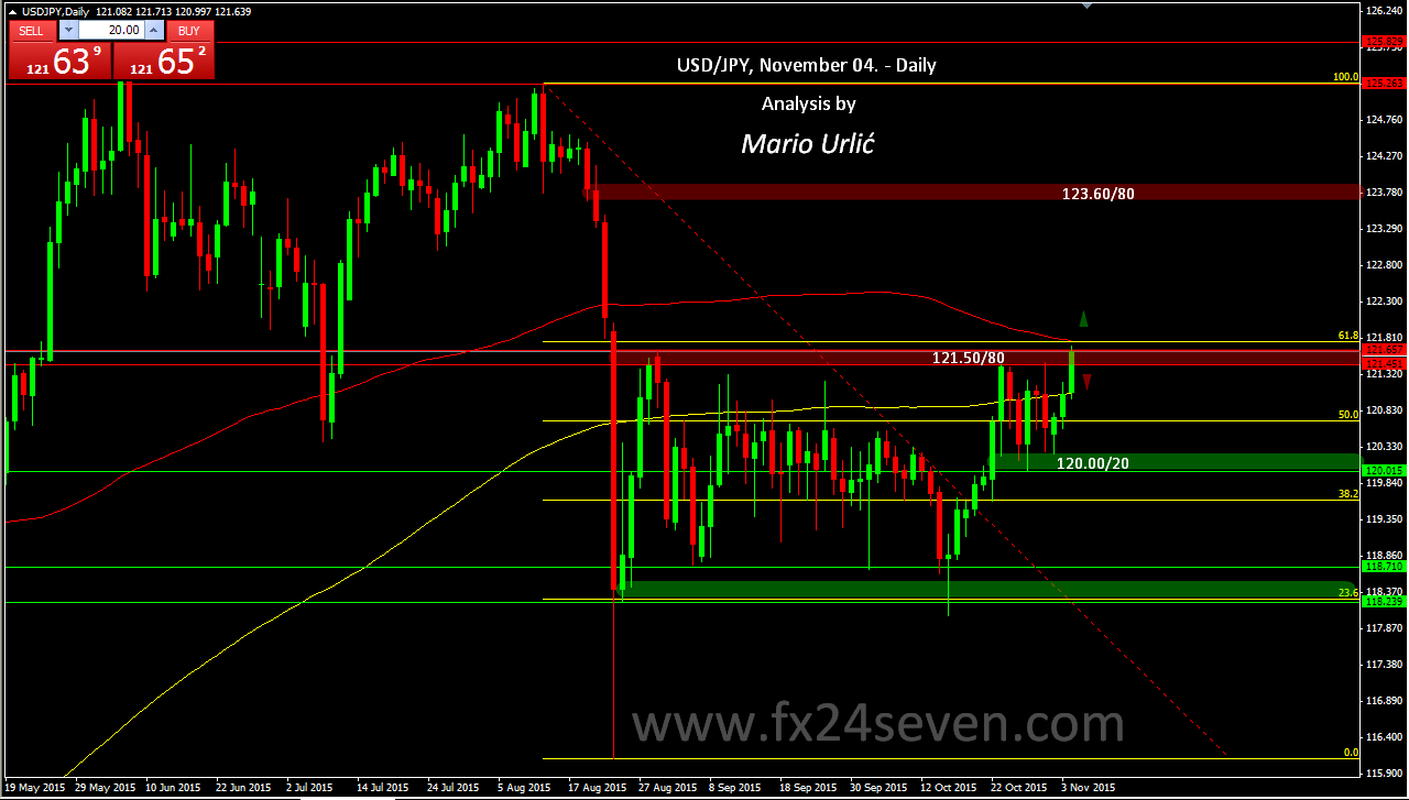 After Yellen speach, the US dollar bulls are flying high today. This is highest level from August 31. with 121.72 for now. This level is strong previous resistance in the last two months, 61.8 fibo return is on test, daily MA100 at 121.79 as well. If the bulls manage this level, this could become a new stong support and the pair could try higher levels in November. Looks preaty bullish for now, this is third week in a row that this level is on test, it could fall. On the way back, daily MA200 is first on the support side, 120.00/20 is next.