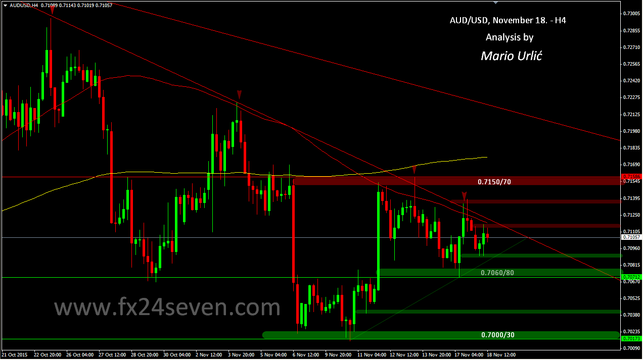 Aussie can’t get out of the bear hug as well, sellers are ready at H4 down trend each time when the buyers try to respond. The resistance is providing the H4/MA100 as well (red), you can see the several burned candles under the line. The previous resistance at 0.7070 stoped the fall yesterday and return the pair just under the down trend line again today, but there is no enough strenght to brake that true. First resistance on the way up is 0.7115/20, where the trend line and MA100 is placed as well, follows 0.7130/40, stronger at 0.7150/80. On the way back down, first support for Aussie is at 0.7100/090, intra-day at 0.7060/80, stronger at 0.7000/30. If we take a closer look, moving in between support at 0.7060/80 and down trendline is descending triangle and based on that, furder fall could be inevitable if the sellers broke support. US dollar is taking a breath for a while, but, here is not much action for now.