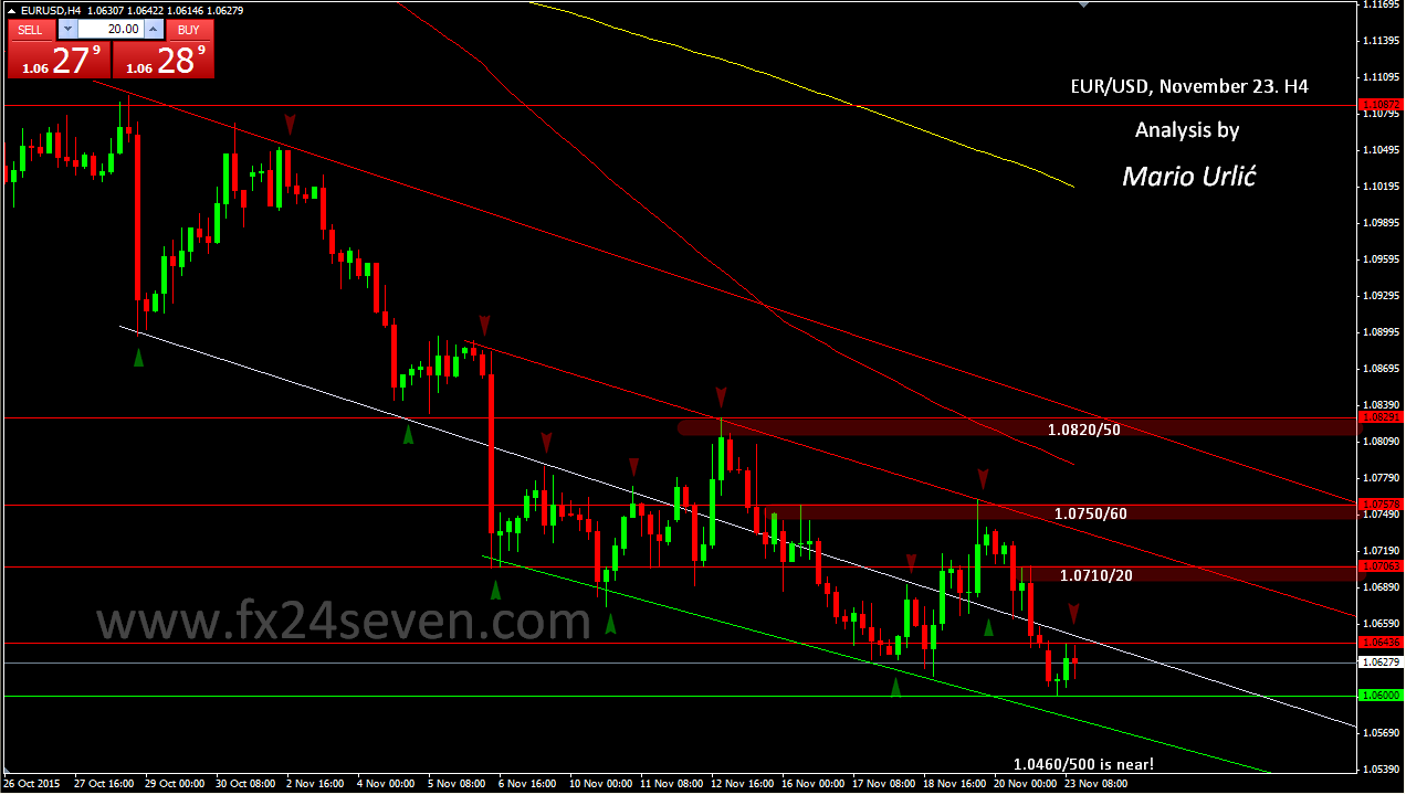The pair is falling slowly but steady for days and today we have another low in the last 7 months, round 1.0600 for now. Trend lines are all over the place and the sellers are positioned at various locations on the way up. There is no major support here, at least I can’t see it, except these trend lines and previous support from April 12. at 1.0520. But, that level is near the previous 2015. low at 1.0460/500 and it could be tempty for the sellers, to make a new one for sure. On the other way, the buyers are placed above the previous multi year low, there is no doubt about that, but we have seen the bears strenght in the previous weeks. Let’s see, when and can they become more serious? If not, the buyers could turn over, or at least they can try again!