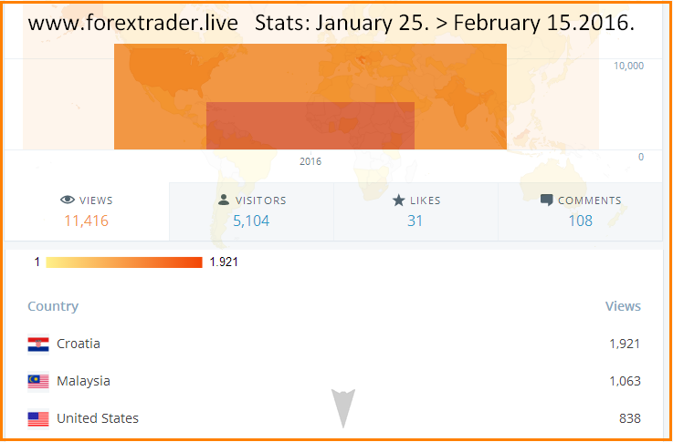 When I start to write my first blog fx24seven.com I was more then surprise in the first month of my writing with 3046 views and 1037 unique visitors. Well, what can I say now with my new blog forextrader.live after only 20 days of active writing with more then 11,400 views and with more then 5,100 unique visitors from 104 countries, 108 comments!? All I can say is that I am thrilled with you and I hope that you share the same feeling with me!? And, this is just the beginning of our journey. Stay tune and thank you! 🙂