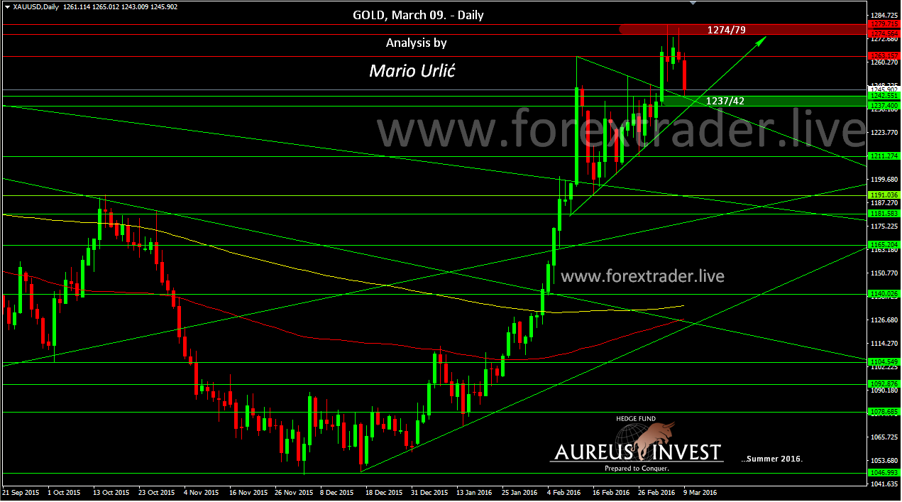 Gold is falling for two days after the bulls couldn’t brake the 1279 resistance and it will be interesting to see are they ready for turnover here at 1242? This could be the place for reloud the weapon and to try again, but if the bears break this down bellow 1237 it could be difficult to return precious metal up. Let’s see, it could become very interesting!?