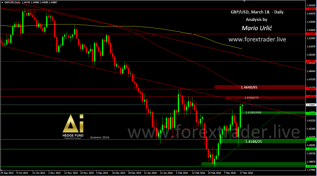 The buyers are persistent, pushed the Pound strongly from 1.4100 in the last two days. But, they are in a serious test now, in front of the strong technical resistance, which has stoped the growth yesterday as well at 1.4500. This is sellers area, but the buyers looks determinated enough to go higher. For sure, this it will be very interesting to follow at the end of the week. If they can manage to break this trend lines, first resistance level is 1.4560/75, the strong one is waiting at 1.4640/65. On the way back, intraday support is waiting for sellers at 1.4400.