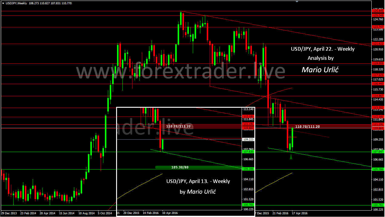 Sure, exactly how I predicted and describe in my USD/JPY analysis from April 13. In the last week, the pair found resistance at the 109.30/60 level, as I wrote and the strong buyers were ready in the beginning of this week at the 107.60 level. I draw that weekly resistance level and trendline support last week and the pair moved exactly based on them. It’s the same thing what I wrote about in my last USD/JPY analysis, ‘you need the see the market ahead’. The resistance level is all the way to 111.20 and the question is who is ready to sell now? Would you, because I am not sure in wich level the buyers would like to close this week!?