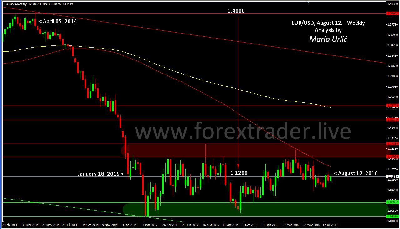 It’s interesting to see how long the consolidation of the main currency pair is. To be precise, from January 18.2015 after the pair reached the exact level where it is today, near the 1.1200. There was some downs and ups as you can see, but we can conclude easy that there is no long-term trend for the past 16 months in which the pair is consolidating after falling from a level of 1.400. It’s not easy to predict where the pair could go in the future period, long term? There is too much developments and new fundamental reasons and the main one could be the Brexit. This decision can strongly affect the fundamental value of the euro and it is difficult to predict where the same could end in the market verus his main opponent, the US dollar. All you can do until is to trade short term intraday, what else. I trade rearly EUR/USD in 2016 and as you can see, I don’t analyse the same as well. It’s to boring! How about you?