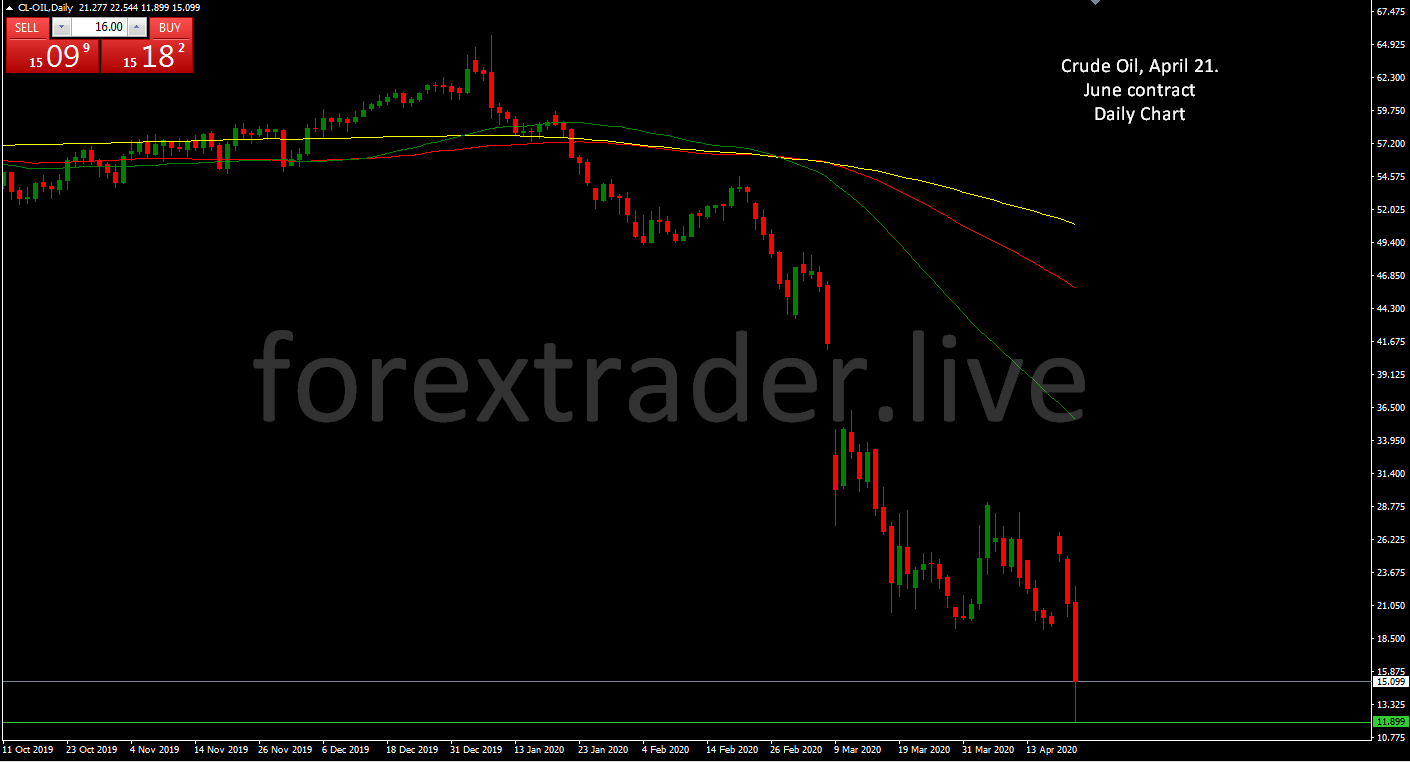 Five hours before a collapse with WTI Crude Oil May futures I wrote an article in which I have warned about a strange development with Oil prices. In that moment, the WTI Crude Oil (May contract) were at aprox $16.00 and 5 hours latter the price fell for 330% to minus $37.00. A historical moment that’s for sure, as the WTI Crude futures trades from 1983 and has never been even bellow $10.00 per barrel. A total collapse!